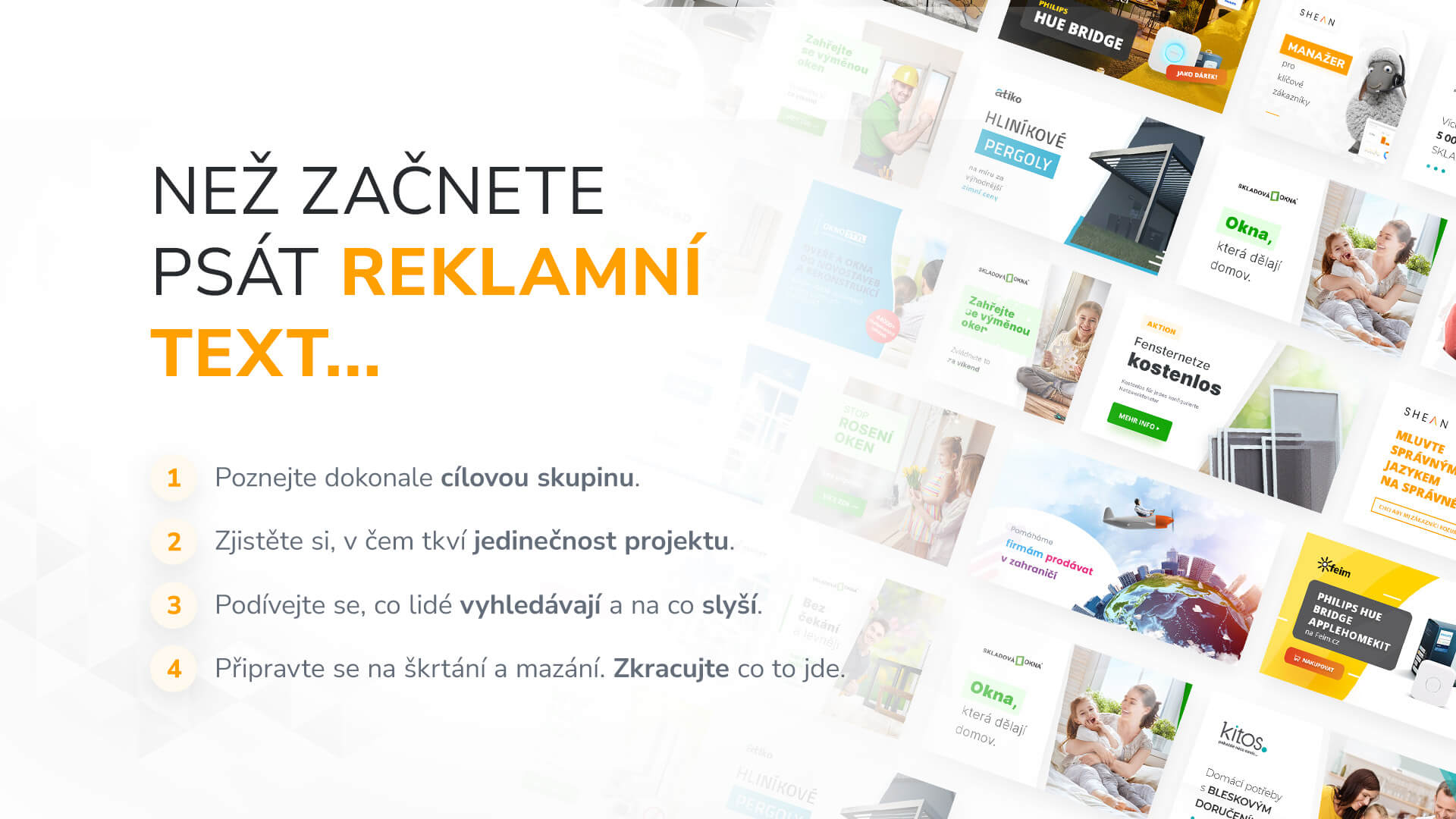 U textových reklam je důležité brát v potaz i aktuální situaci. Například v období karantény dobře fungovaly texty obsahující fráze typu: pohodlně z domova, pohodlně online.”