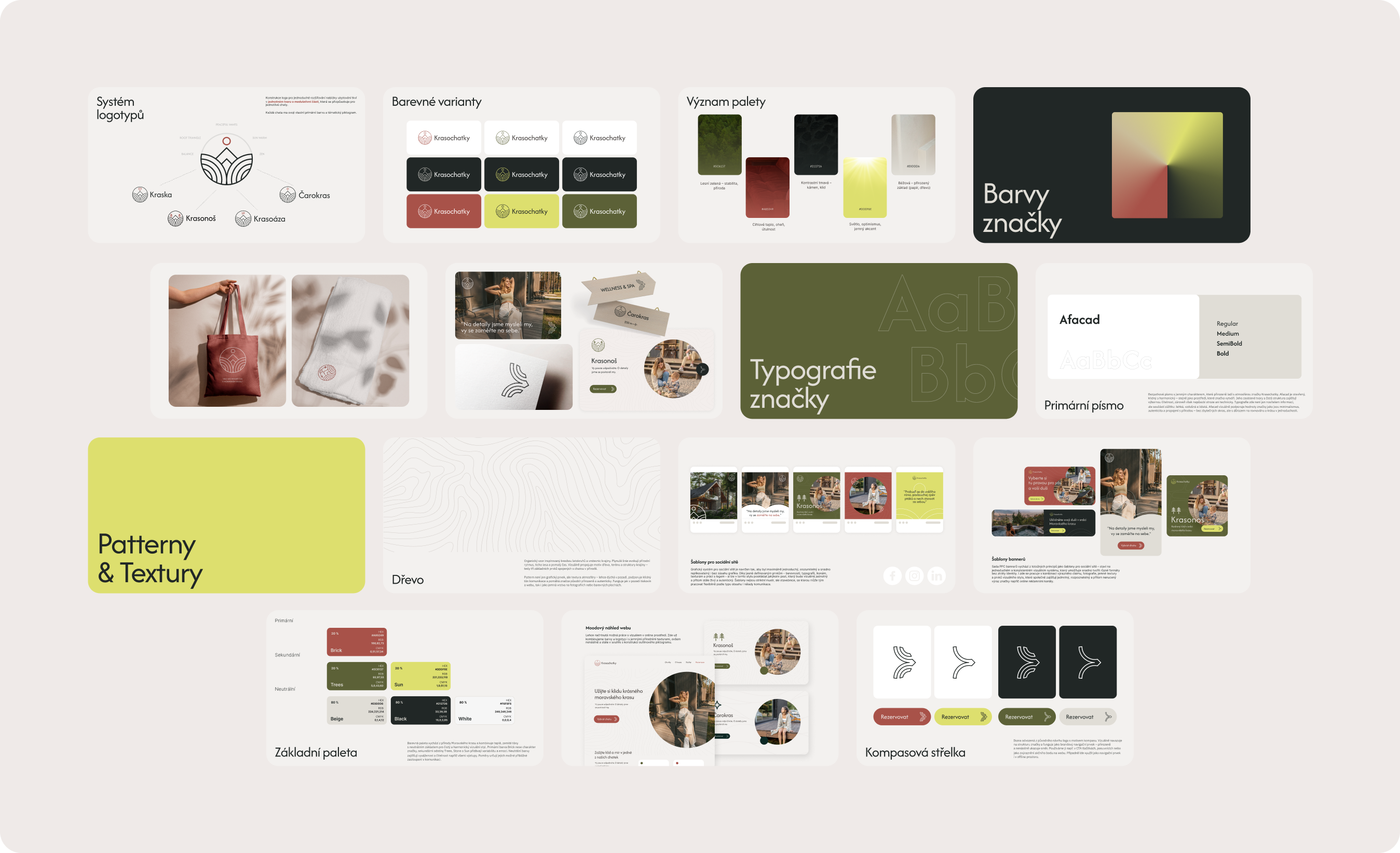 Výsledkem nebyl jen vizuálně atraktivní návrh, ale pevný základ pro celou značku. Krasochatky získaly směr, který lépe odpovídá tomu, co projekt ve skutečnosti nabízí: klid, harmonii, detail, osobitost a zážitek. Díky tomu může značka působit konzistentněji, sebevědoměji a zároveň zůstat otevřená dalšímu vývoji.