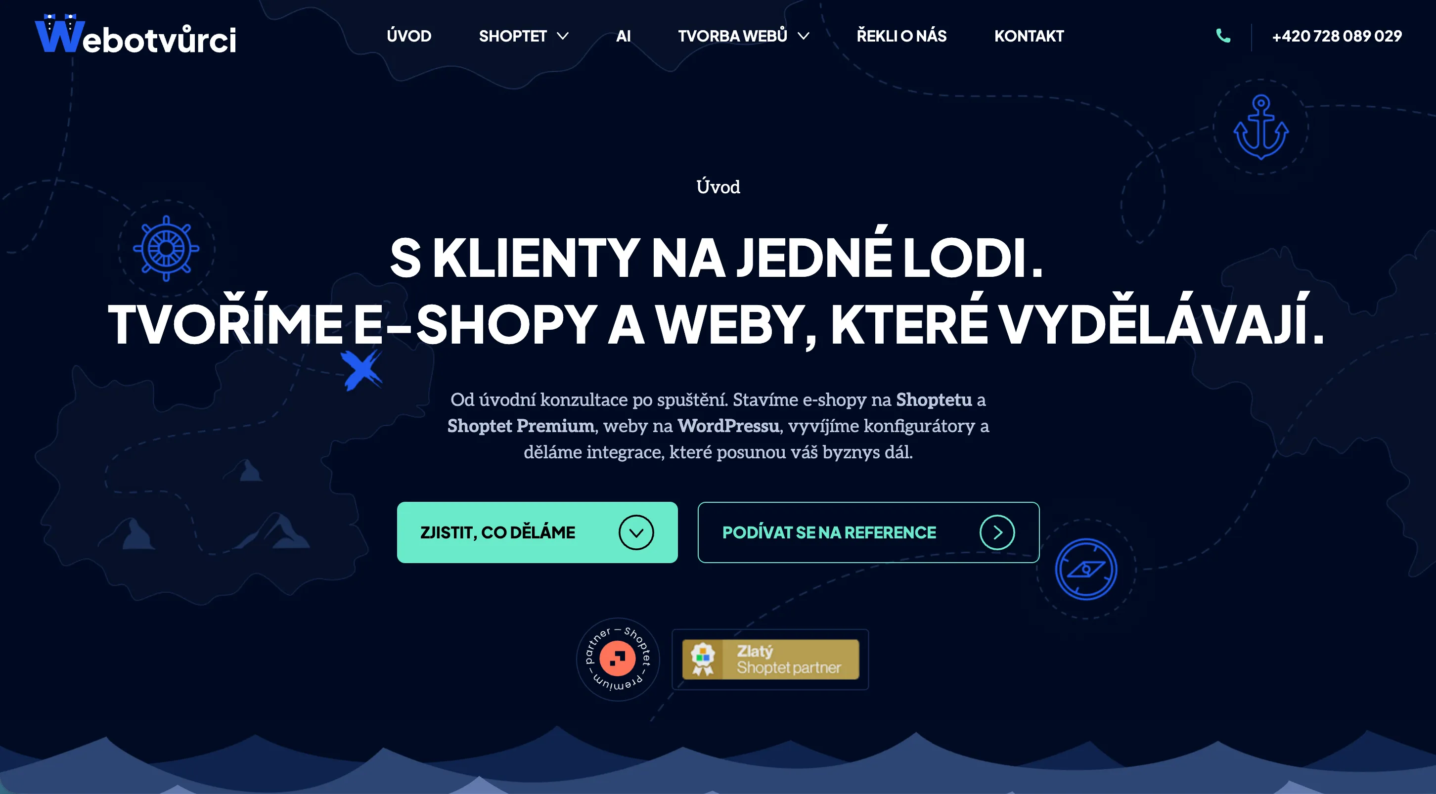 Webotvůrci jsou parta lidí, která umí tvořit weby a e-shopy. Jsou certifikovaným Zlatým Shoptet Partnerem a kromě samotné tvorby webů vyvíjejí i vlastní doplňky. Jejich filozofie stojí na přátelském přístupu, technické zdatnosti a férové komunikaci.
